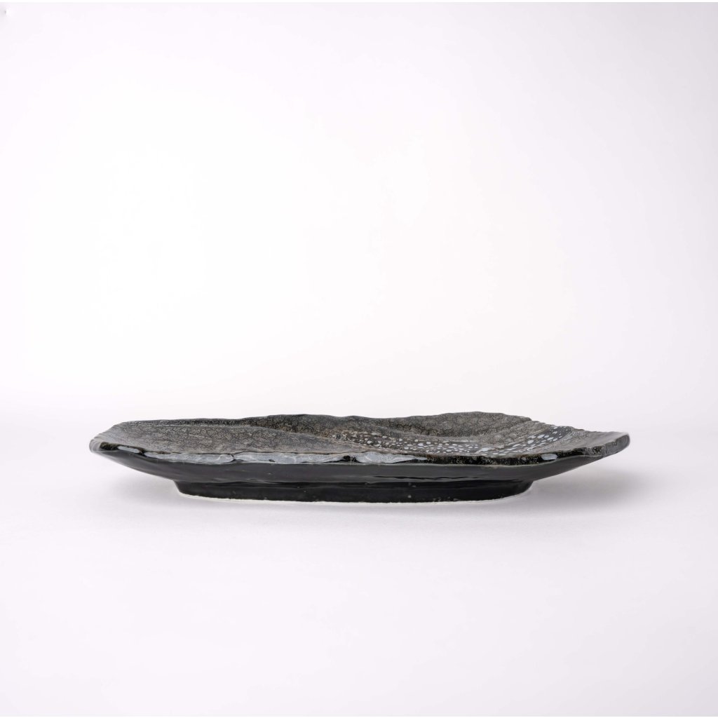 Middagstallrik SHIRANAMI 27 x 17 cm, svart, keramik, MIJ