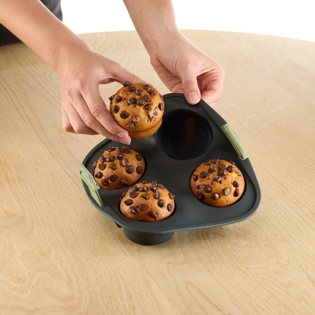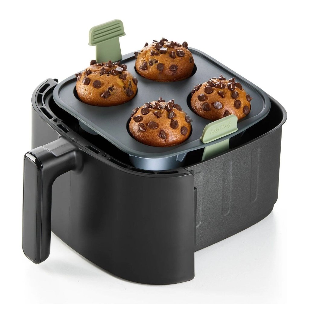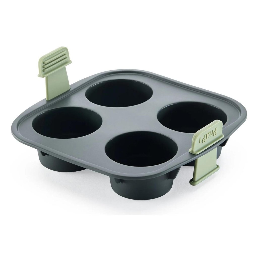 - muffinform Lékué är idealisk för att snabbt och enkelt tillaga fyra fluffiga muffins direkt i varmluftsfritösen.