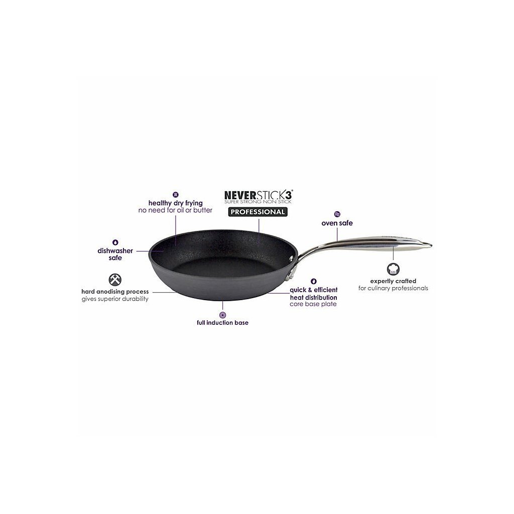 Eaziglide Neverstick3 Professional köksredskapskollektion innehåller det bästa utbudet av produkter. Den är tillverkad av anodiserat flygplansaluminium för intensiv hållbarhet. Den senaste och förbättrade non-stick-ytan på kokkärl håller mycket längre än andra ytor. Den är idealisk för kulinariska proffs. Detta högkvalitativa köksredskap är perfekt för alla typer av spisar, inklusive induktion, och kan även användas för bakning i ugn upp till 260 °C och tål maskindisk. Matlagning blir hälsosammare med detta köksredskap eftersom du kan laga mat utan olja eller andra fetter.