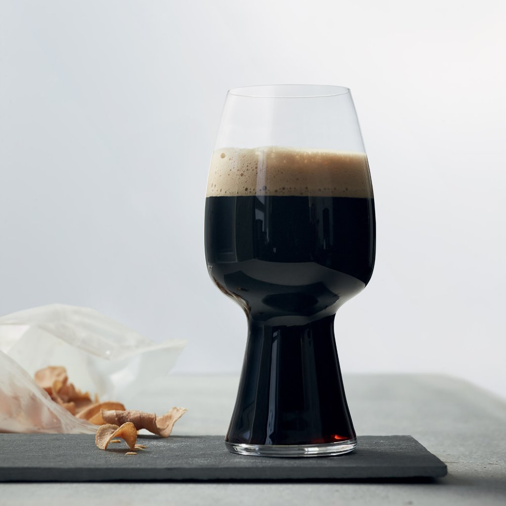 Stout Craft Beer-glaset, Spiegelau är utformat för hantverksöl av typen stout. Stout är ett mörkt, överjäst aleöl som kännetecknas av sin tjocka skumkrona, mörka färg och smak av den rostade malt som det tillverkas av. Som regel är detta starköl med en alkoholhalt på ibland upp till 9 %. Den fylliga smaken, den distinkta färgen och aromen förtjänar att serveras i ett särskilt format glas. Njut själv av kontrasten mellan det mörka, fylliga ölet och det sammetslena skummet.
