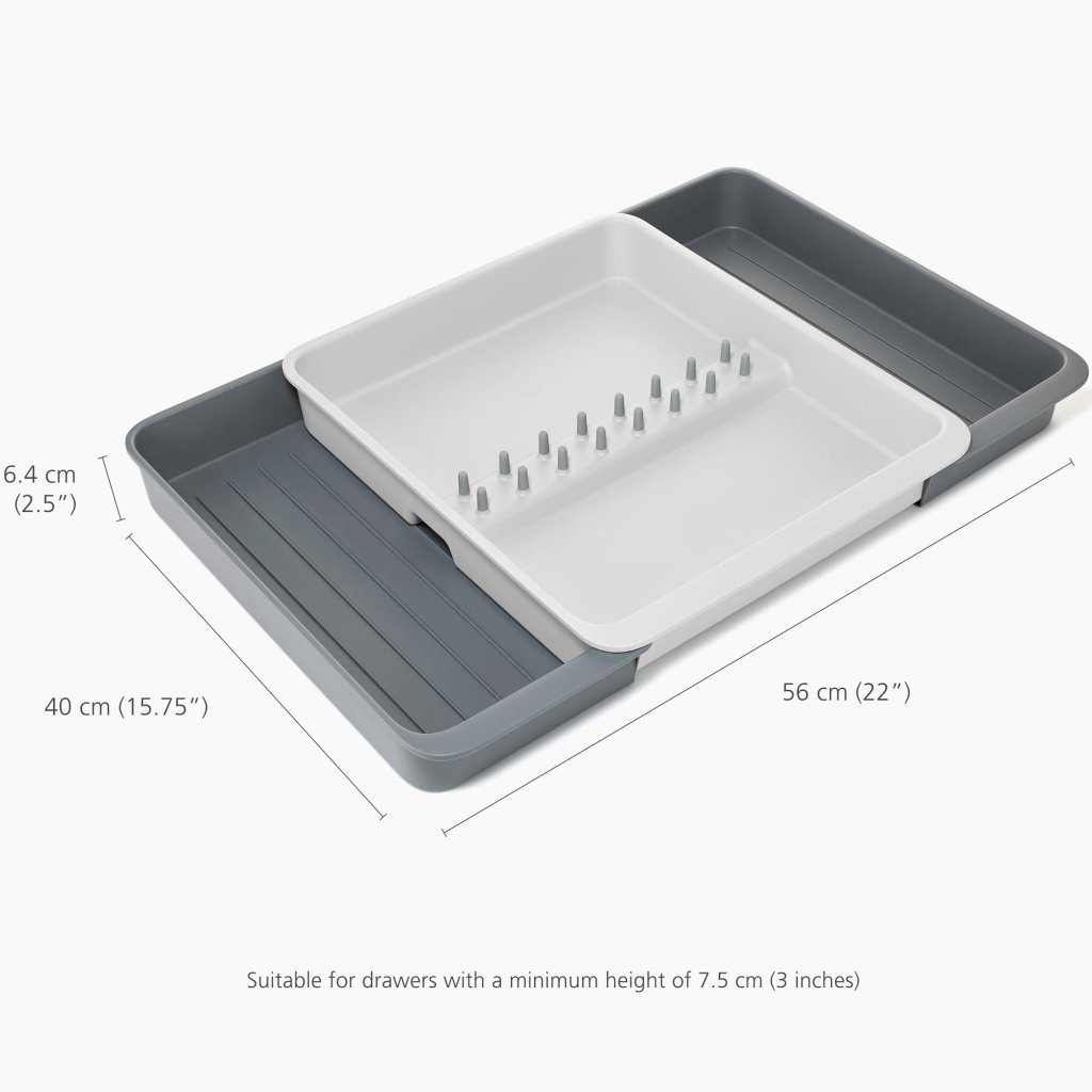 - Organizern är designad för lådor med en minimihöjd på 7,5 cm, vilket gör den lämplig för de flesta vanliga köksinredningar.