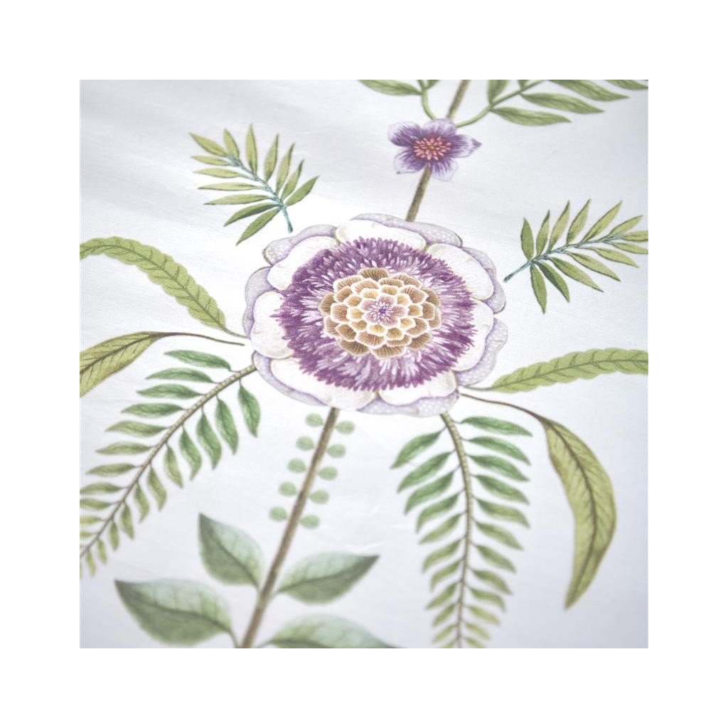 - elegant, ren, luftig design i vitt med symmetriskt placerade blad, blommor och växtstjälkar