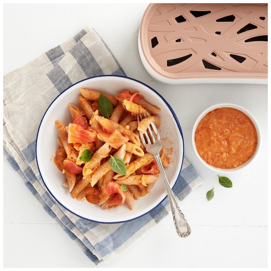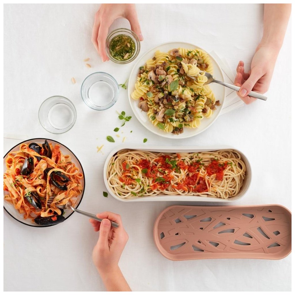 - behållaren är designad för att laga alla typer av pasta: torr, färsk, alla former, även spagetti!