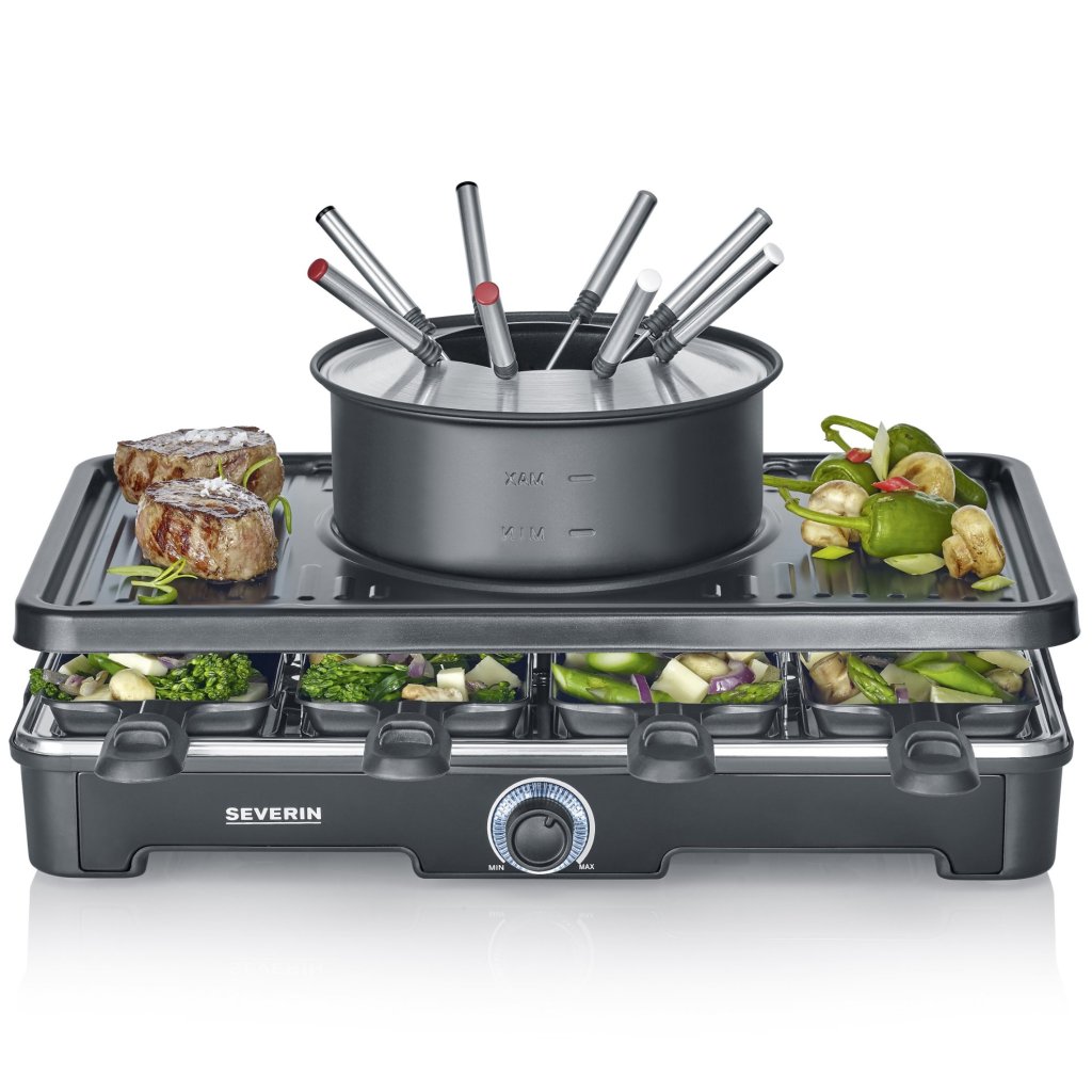 - multifunktionell enhet som kombinerar raclette, fondue och grill - det perfekta valet för sociala middagar
