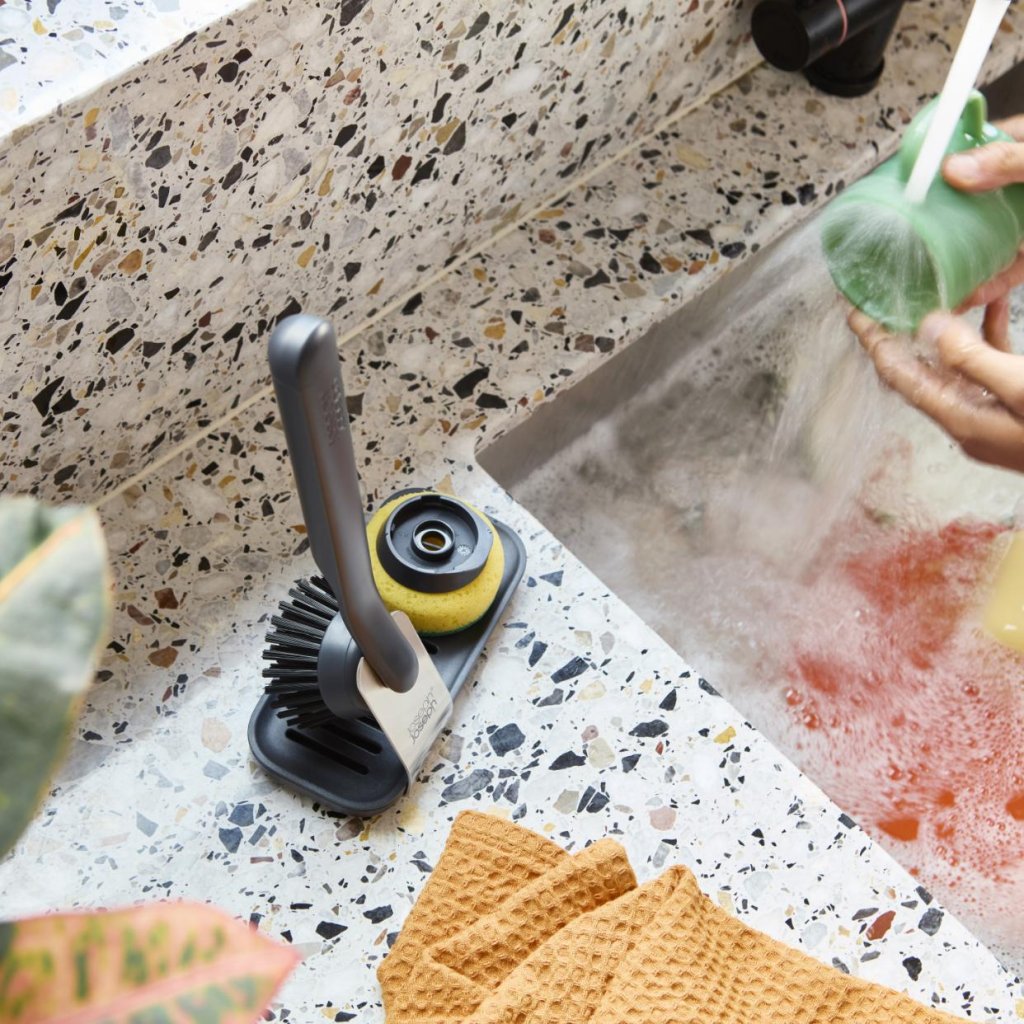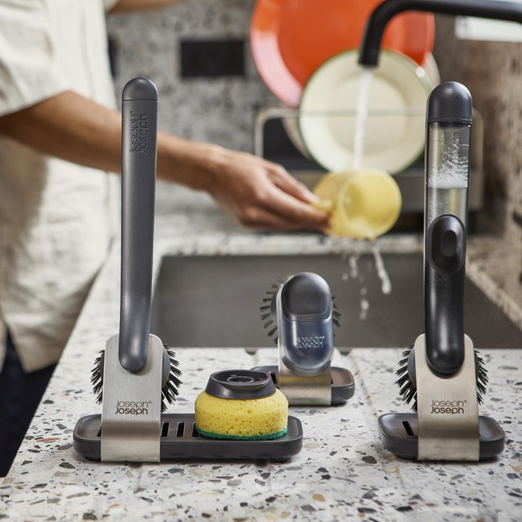 - Setet innehåller två utbytbara huvuden som är kompatibla med alla Joseph Joseph SINKTECH-borstar.