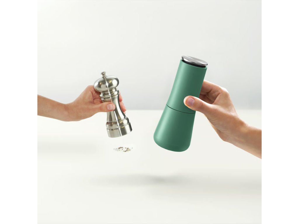 - kvarnsetet har en unik design som eliminerar röran på bordet genom att placera slipmekanismen ovanpå