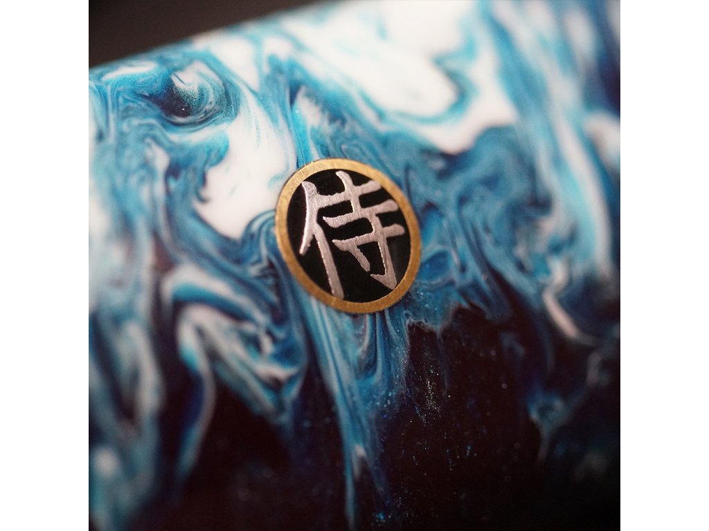 - handtag i färgad harts med tre nitar - mittniten med samurajemblem