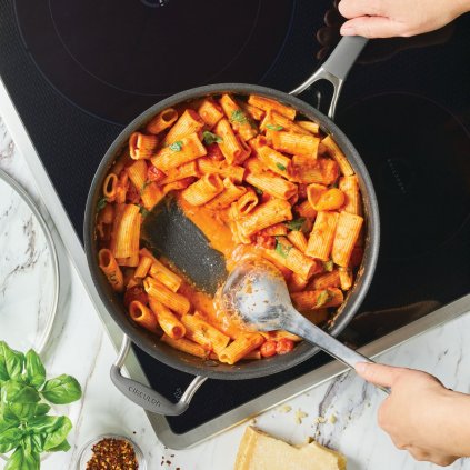 - Oslagbar kapacitet – tack vare de högre kanterna passar den utmärkt för att tillaga större portioner och rätter med sås.
