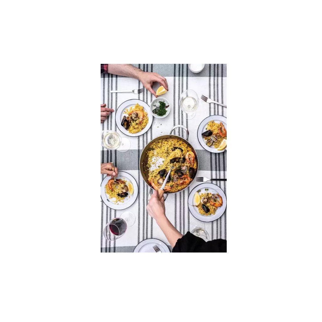 Den populära stålpannan nu speciellt för paellatillagning med två handtag. Tack vare avsaknaden av ett långt handtag passar den bekvämt i ugnen.