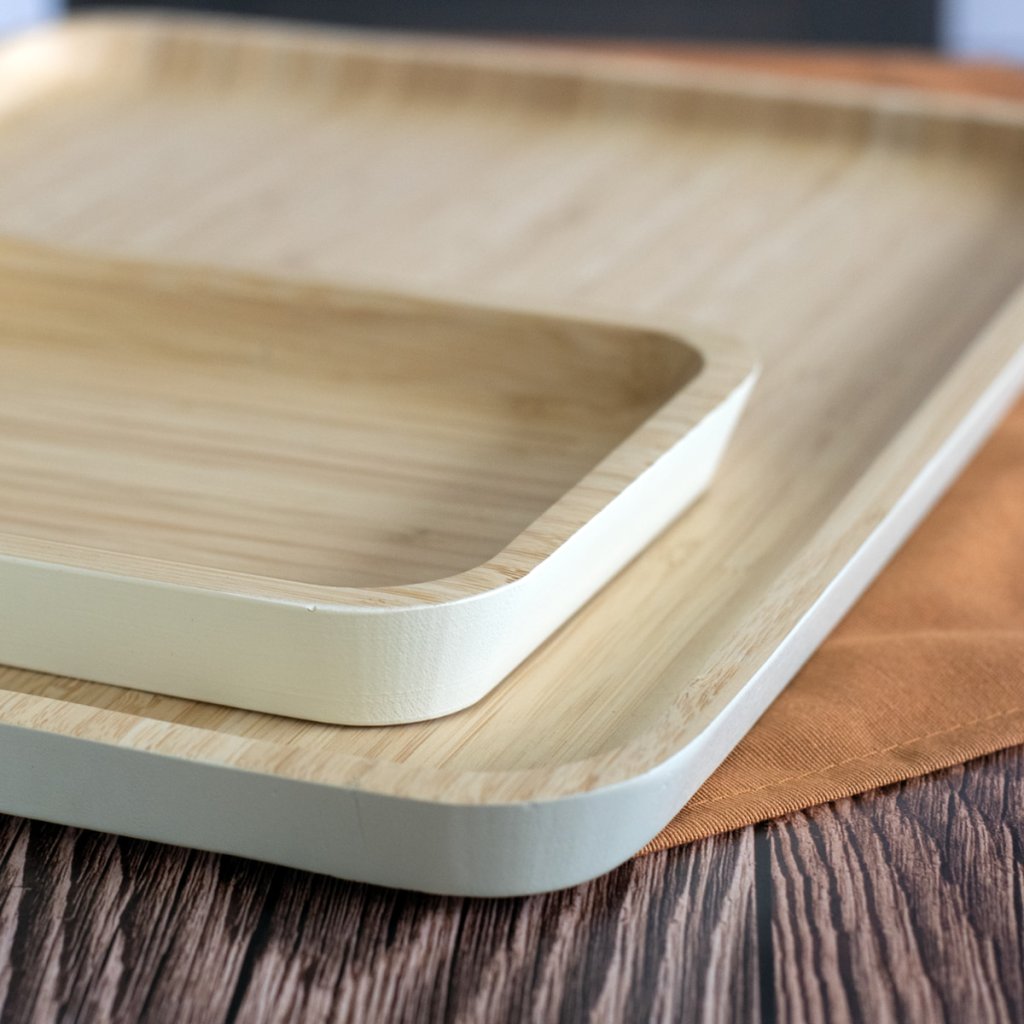 - serveringsbrickan i bambu i storlek S med vit upphöjd kant är idealisk för vardagsbruk i hemmet och för speciella tillfällen