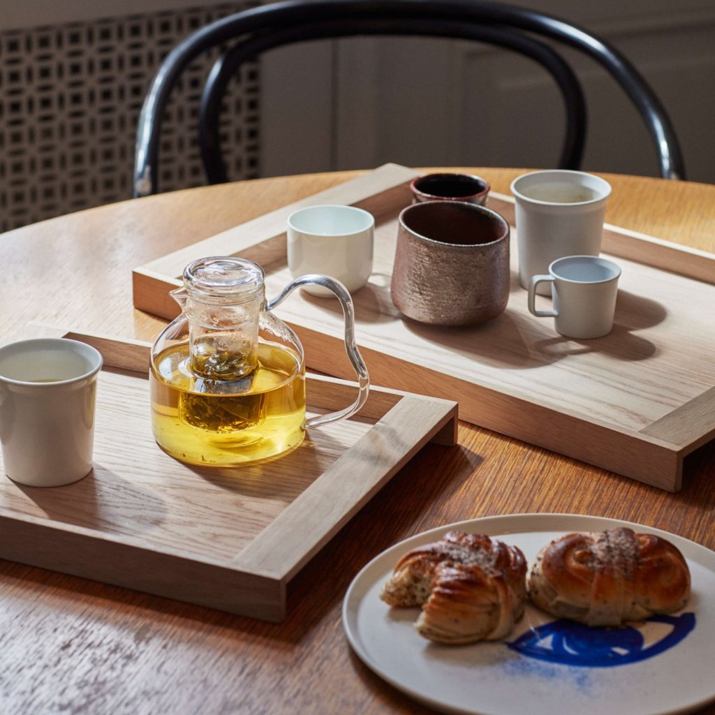- modern serveringsbricka designad av den japanska designern Teruhiro Yanagihara för varumärket Fritz Hansen i en anda av japansk-skandinavisk estetik