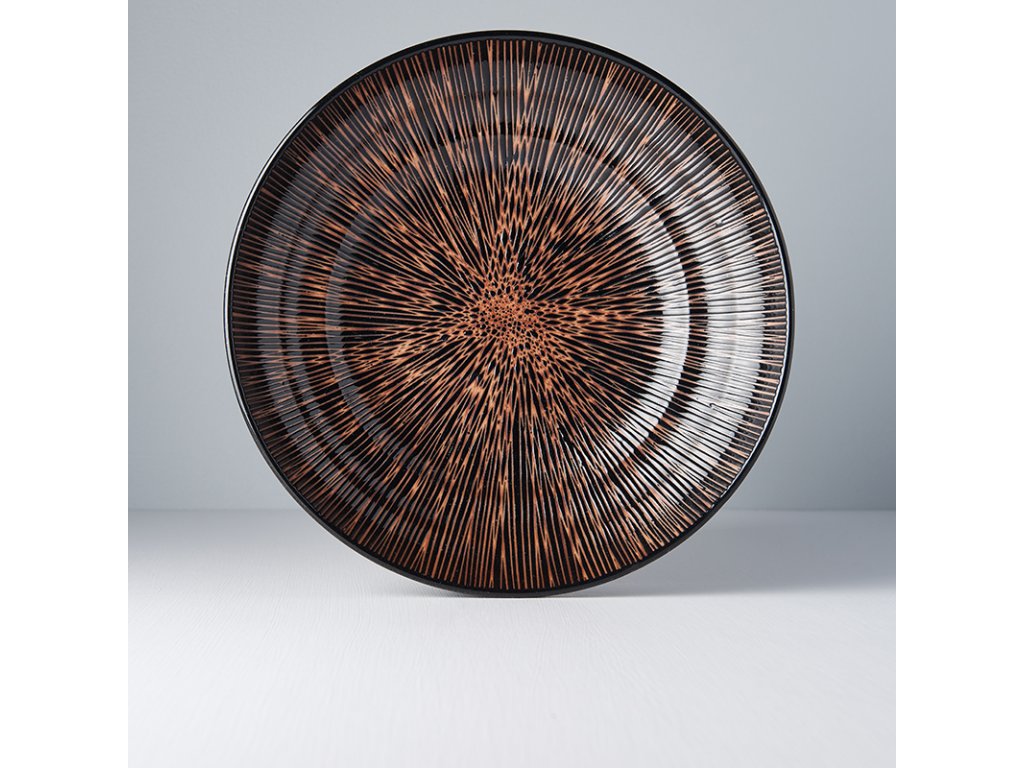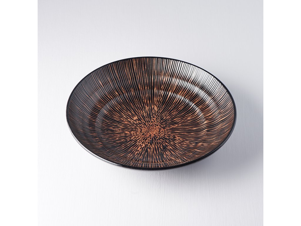 Den stora skålen från kollektionen Bronze Converging från Made in Japan är handgjord av högkvalitativ naturlig keramik som är fri från skadliga ämnen. Varje verk är ett original. Keramiken importeras direkt från Japan. Den tål maskindisk och mikrovågsugn.