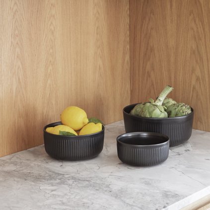 Serveringsskålar av stengods: Starka och användbara, utmärkta för dagligt bruk. Den har måttliga bränningstemperaturer som möjliggör skräddarsydda pjäser. De är starkare än lergods och motståndskraftiga mot spån. Idealisk för tung användning och kan ofta tåla ugnstemperaturer på upp till 250°C