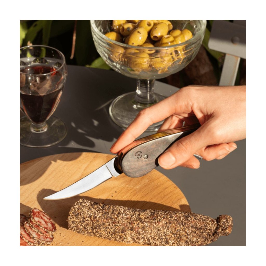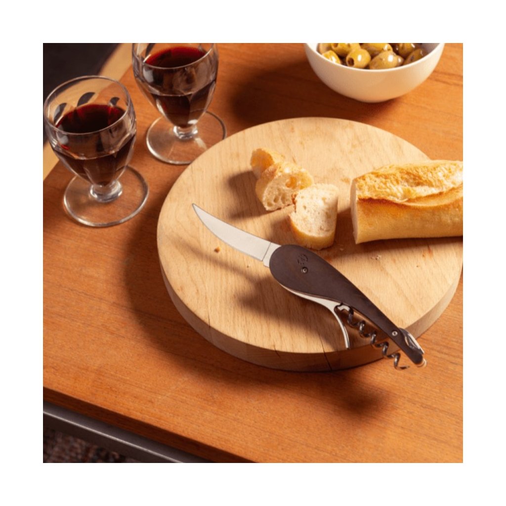 - korkskruven innehåller en folieskärare, en flasköppnare och en kniv med vilken du kan skära bröd, ost, korv eller något annat som passar till vin