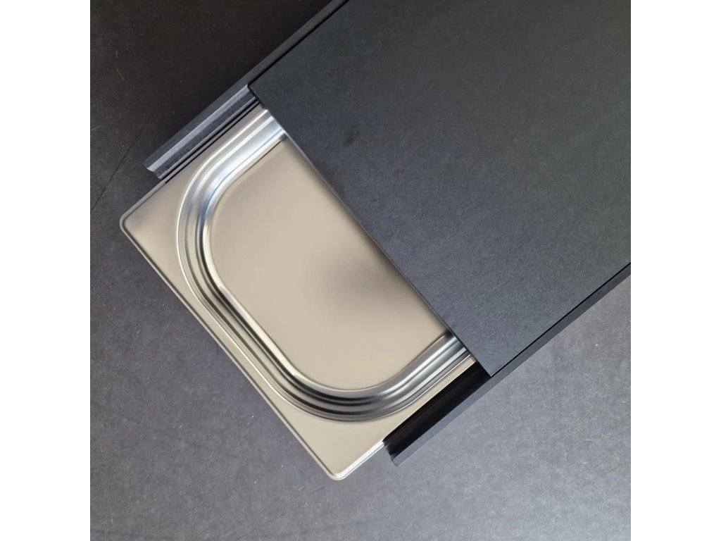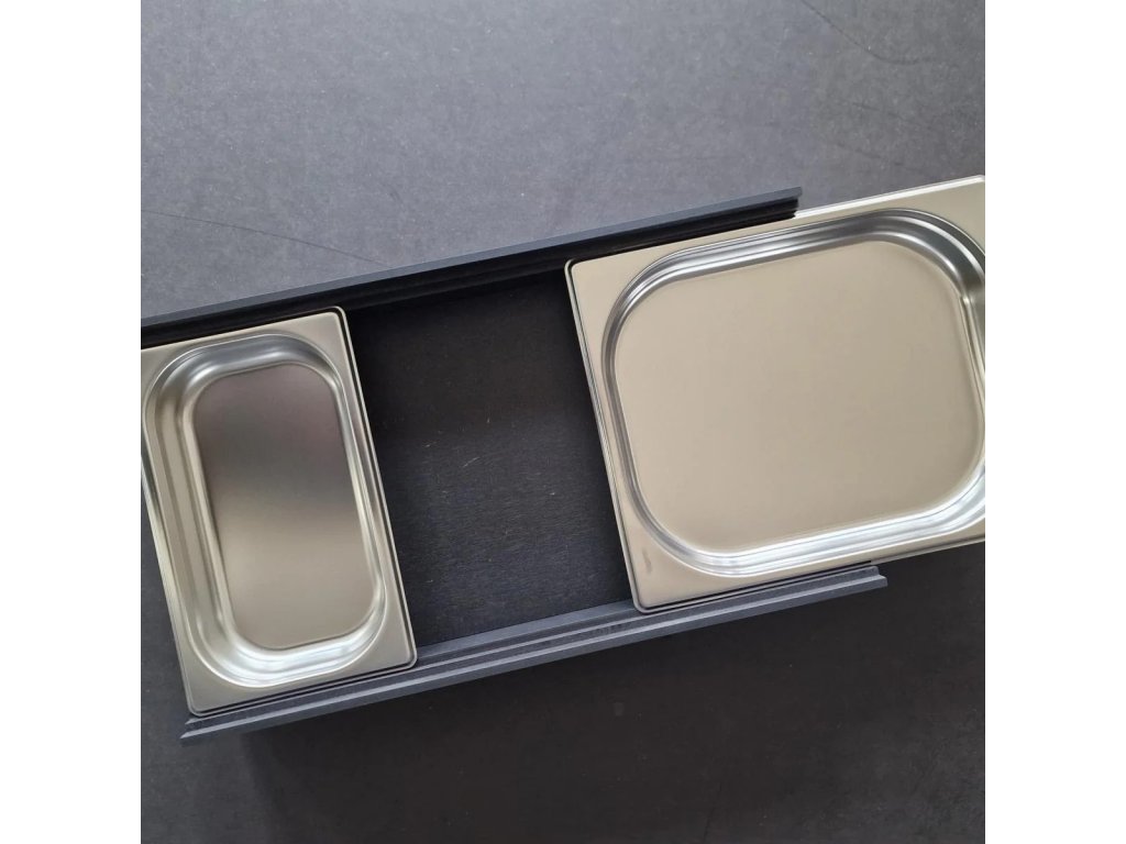 - två utdragbara lådor i rostfritt stål för ingredienser eller bioavfall som uppstår under tillagningen