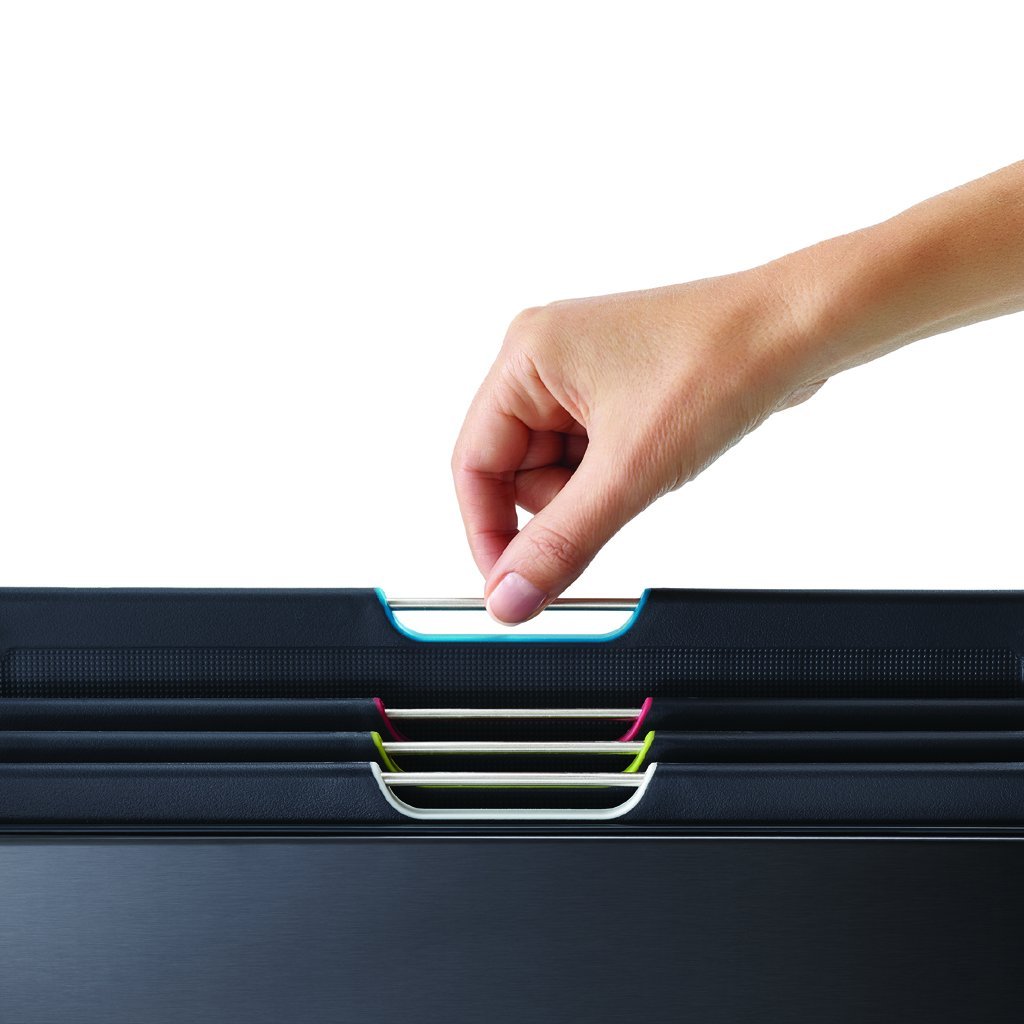 Styrkan med plastskärbrädor är definitivt deras enkla underhåll, hygien och framför allt det faktum att de är känsliga för våra knivar. Målet för formgivarna av Joseph Joseph denna gång var att tillhandahålla en skärbräda att ha till hands på bänkskivan, att ta fram unika skärbrädor som uppfyller syftet till 100% och även att lösa deras eleganta förvaring. FolioSteel skärbrädesställ är ett elegant set för de vanligaste uppgifterna i köket.