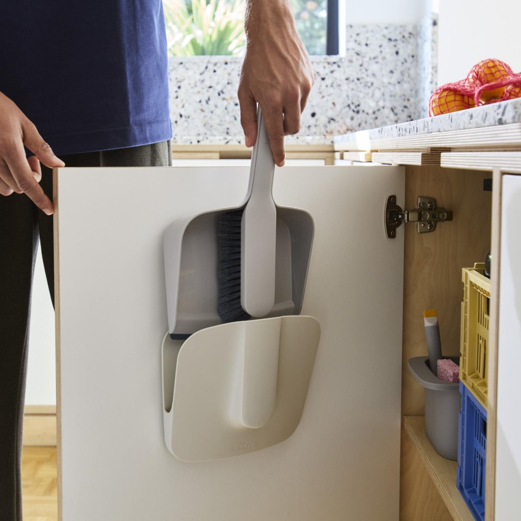 - Sopborsten och skyffeln Joseph Joseph CLEANTECH Àr en praktisk uppsÀttning för snabb rengöring av smÄ smutsflÀckar i hemmet med fokus pÄ hygienisk och överskÄdlig förvaring.
