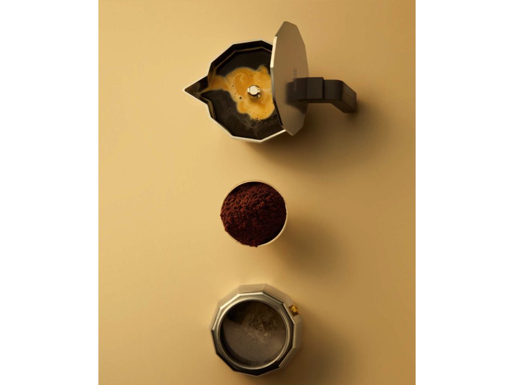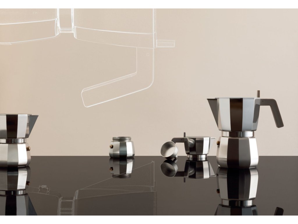 Kaffemaskinen Moka, designad av arkitekten David Chipperfield, är en hyllning till den populära espressomaskinen och dess uppfinnare Alfonso Bialetti, farfar till Alberto Alessiho. Moka har också några nya funktioner tack vare sin innovativa form. En av dem är det platta locket, som fungerar som en yta för uppvärmning av kopparna när man kokar kaffe, och den enkla enhandslyftningen av locket möjliggörs av öppningsspakens position.