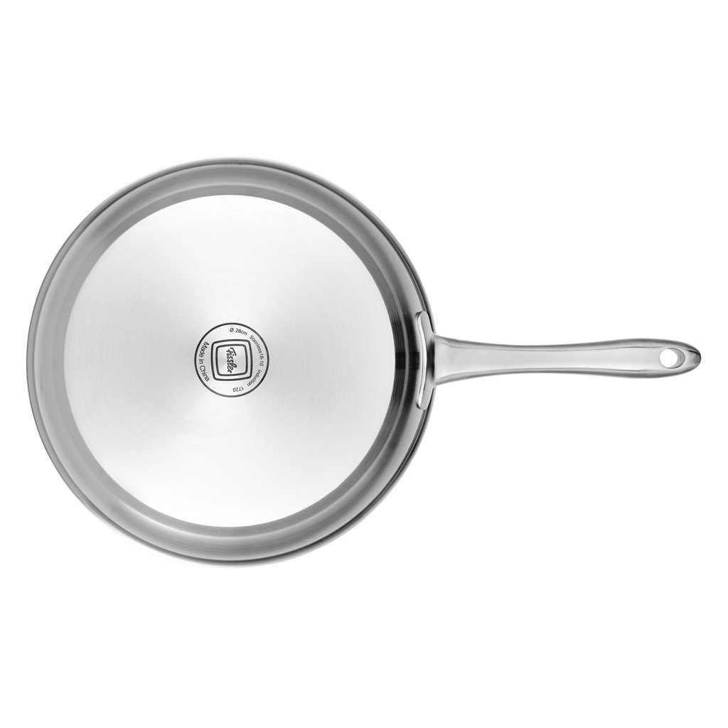 Universalpannan från Catania-serien från Fissler har en diameter på 28 cm. Den är tillverkad i rostfritt stål och passar alla typer av spisar, inklusive induktion, diskmaskiner och ugnar upp till 230°C.
