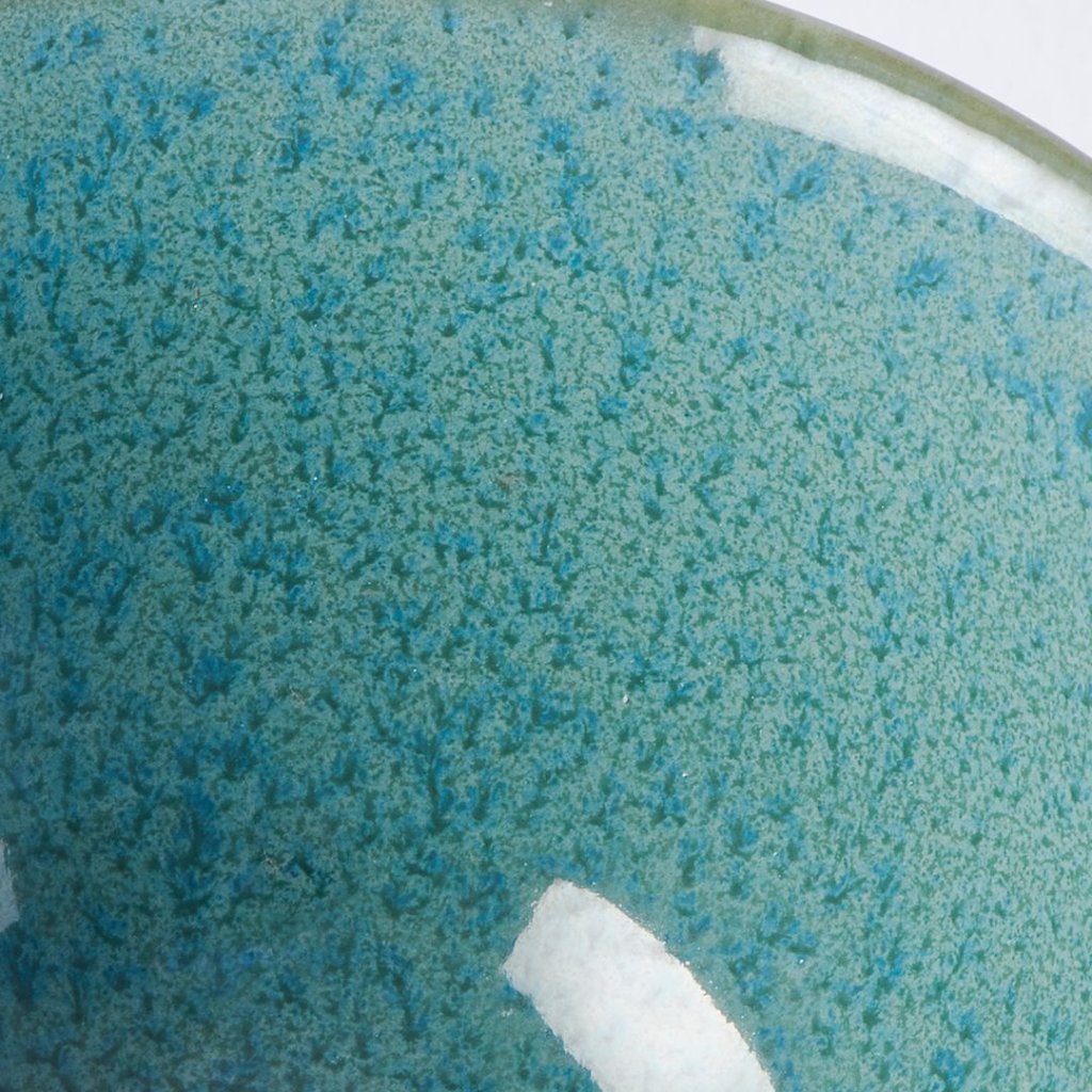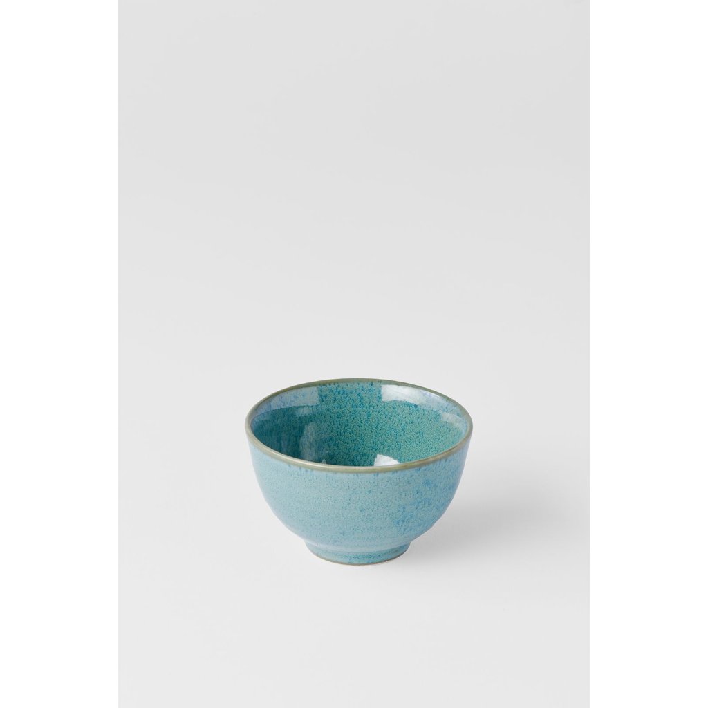 I detta paket hittar du en teskål utan handtag med en diameter på 9 cm från Peacock-kollektionen . Den blanka skålen har en grönblå färg och en gyllene linje på kanten.