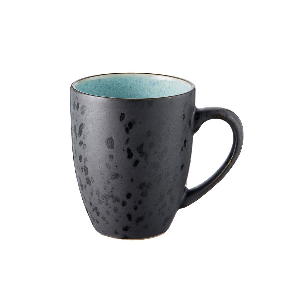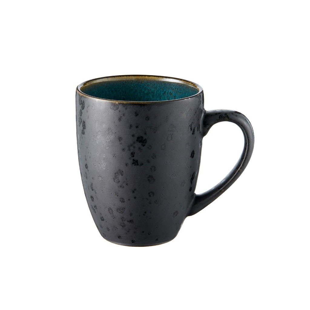 Setet med 4 300 ml muggar med handtag från Bitz är särskilt lämpligt för servering av kaffe eller te. Muggarna är tillverkade av stengods. Den har en blank färgad glasyr i olika färger på insidan och en matt reaktiv glasyr på utsidan. De är skapade för hand, så varje bit är ett original. Att njuta av maten och vara medveten om den - det är målet för den danska tillverkaren av ett stort utbud av stengods Bitz.