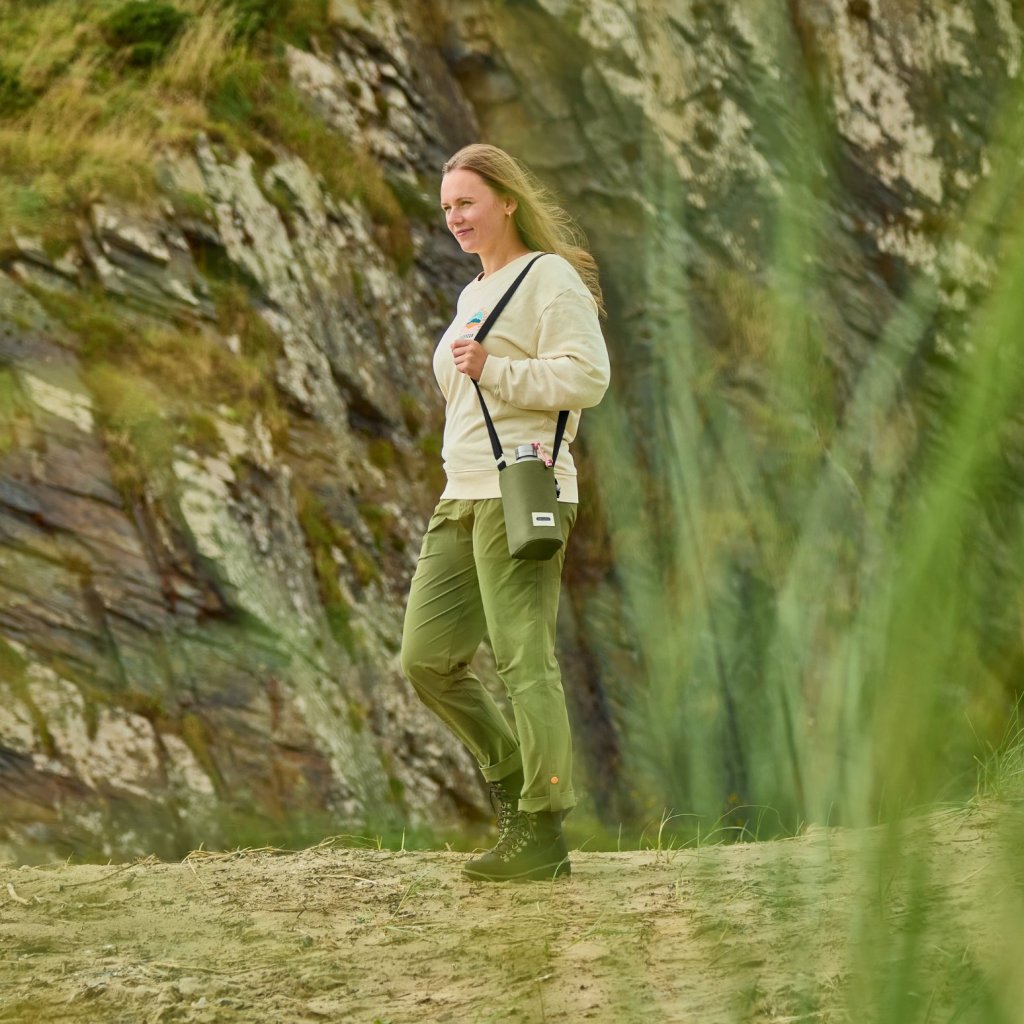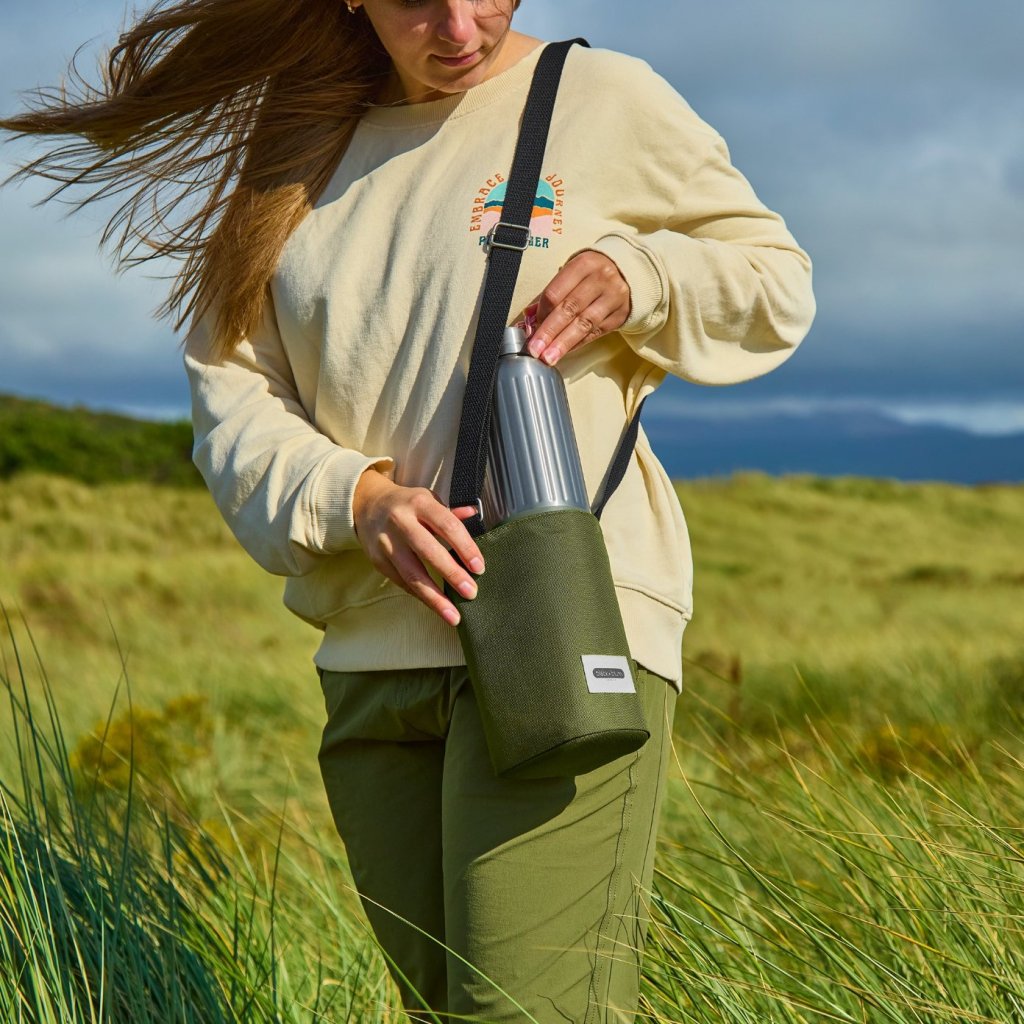 - lätt och praktisk flaskväska i mossgrön färg, som gör det enkelt att bära med sig drycker under resor, sport och vardagsaktiviteter