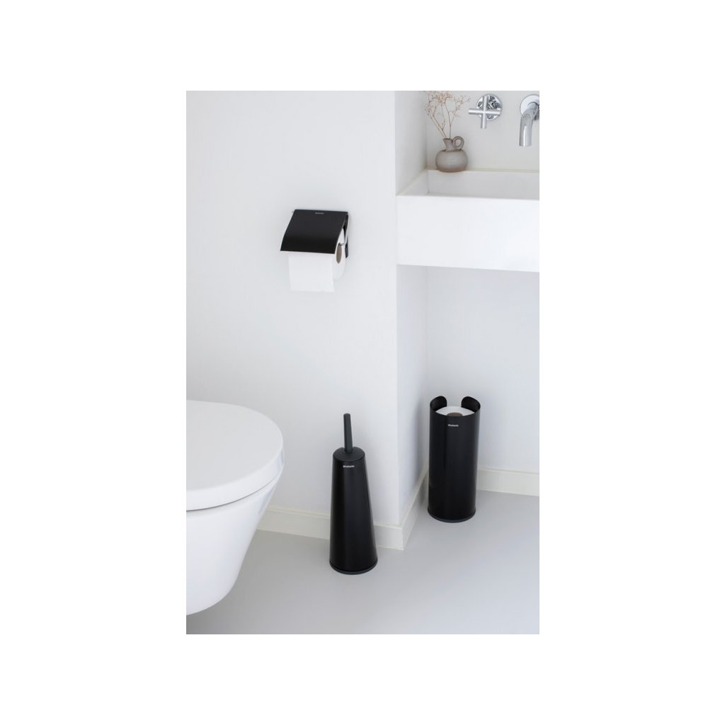 Toalettborsthållare, toalettpappershållare och reservrullstativ i set RENEW, svart, Brabantia