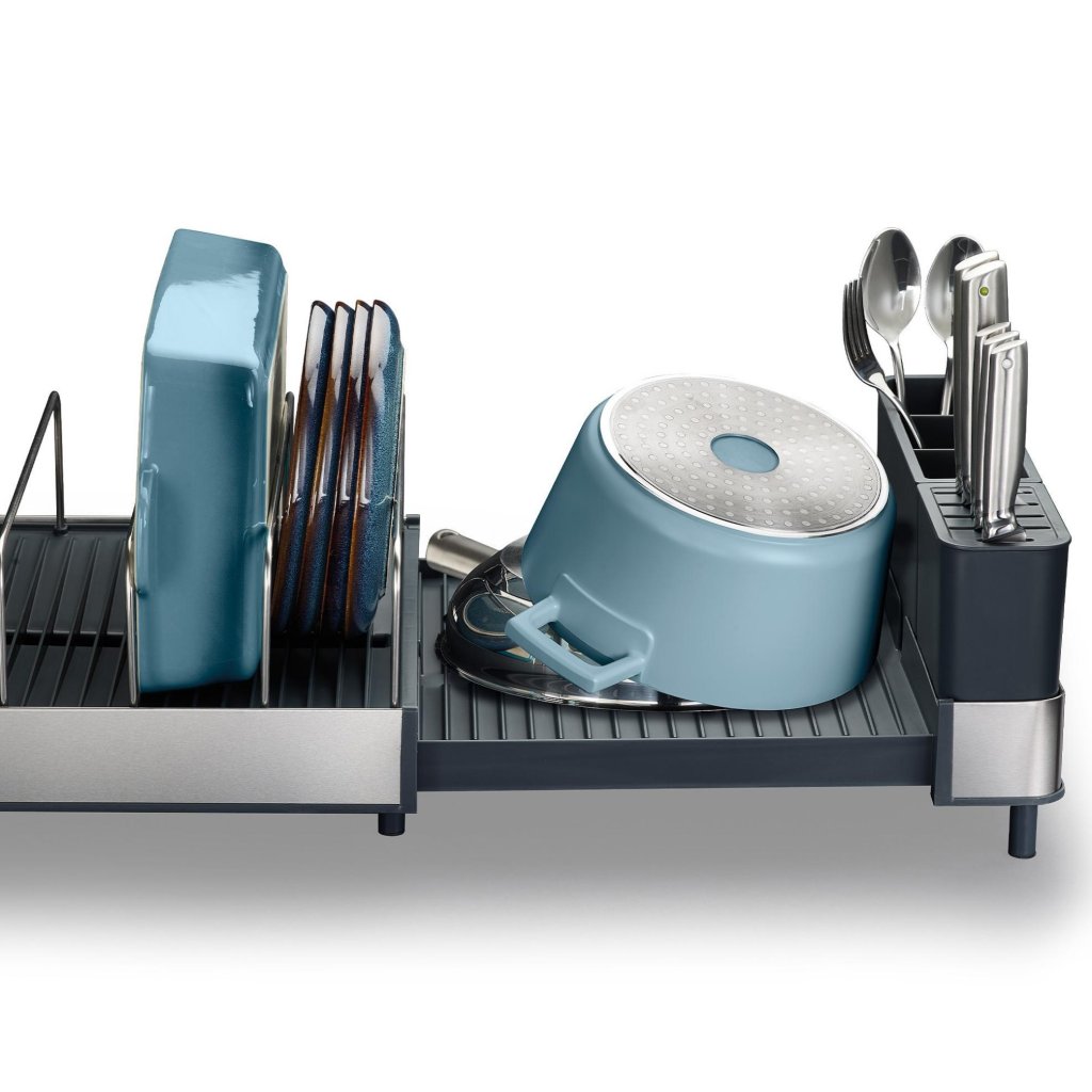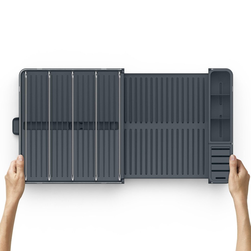 - Joseph Joseph EXTEND MAX är ett praktiskt kökstillbehör som erbjuder flexibelt utrymme för att torka disk samtidigt som det hjälper till att hålla arbetsytan ren.