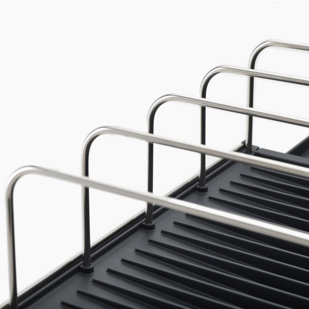 - Den utfällbara designen gör det möjligt att nästan dubbla storleken på avrinningsytan, så att den utan problem rymmer även större kastruller, stekpannor eller annat köksredskap.