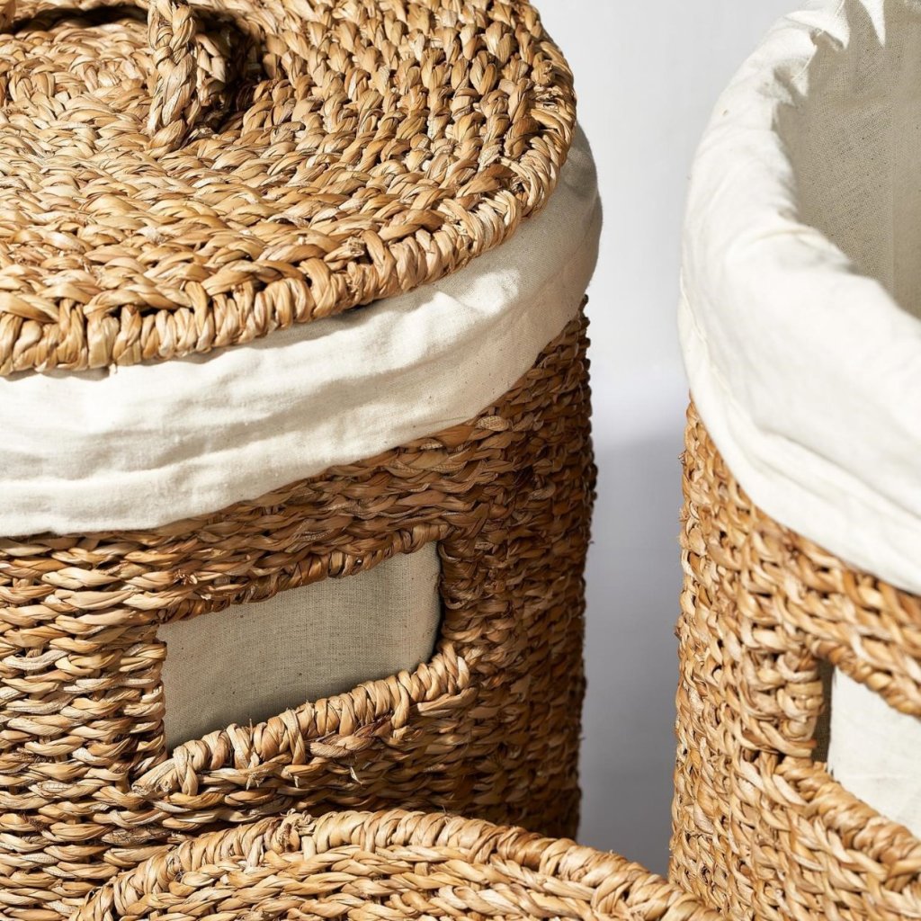 - korgar med lock är tillverkade av sjögräs med bomullsfoder