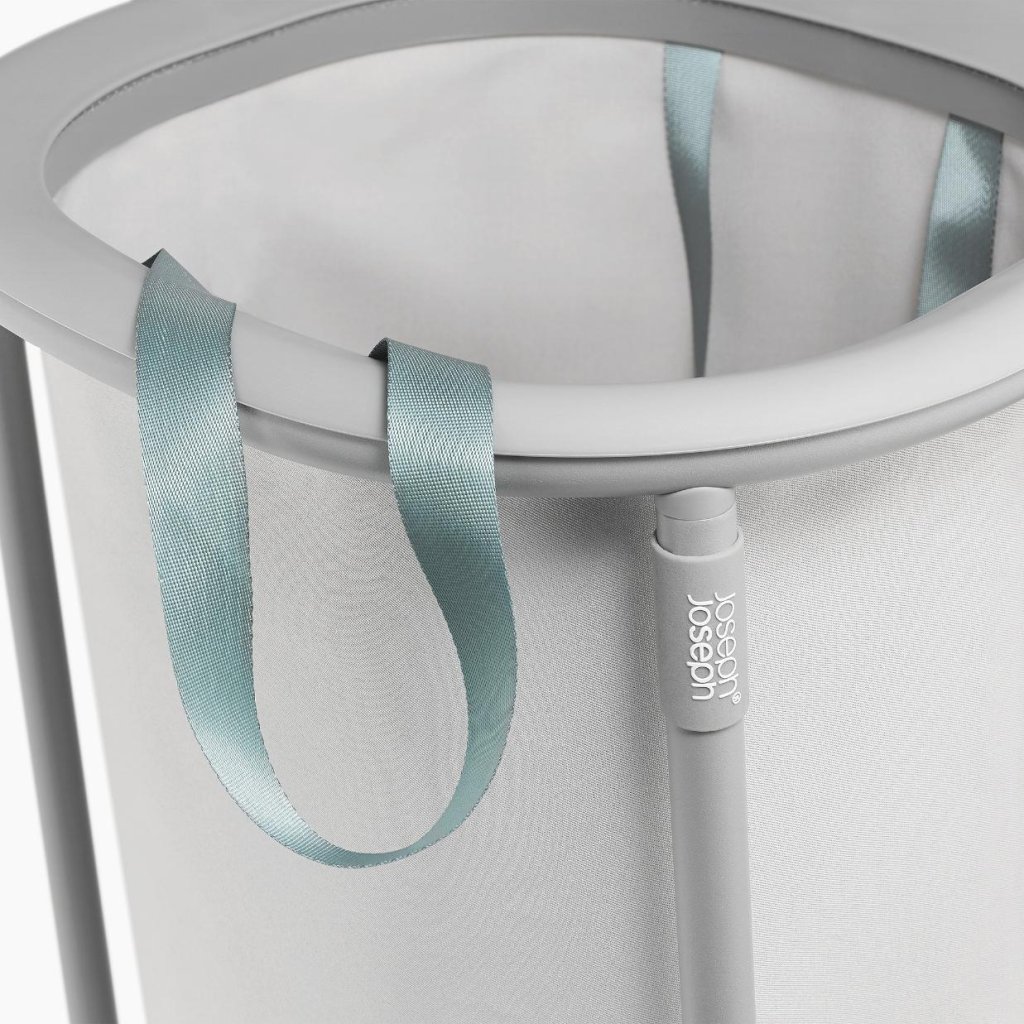 - Korgen innehåller en lätt avtagbar tvättpåse som möjliggör bekväm transport av tvätten direkt till tvättmaskinen utan att behöva bära hela korgen.