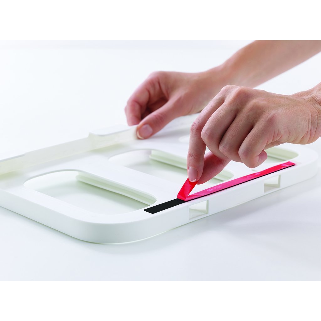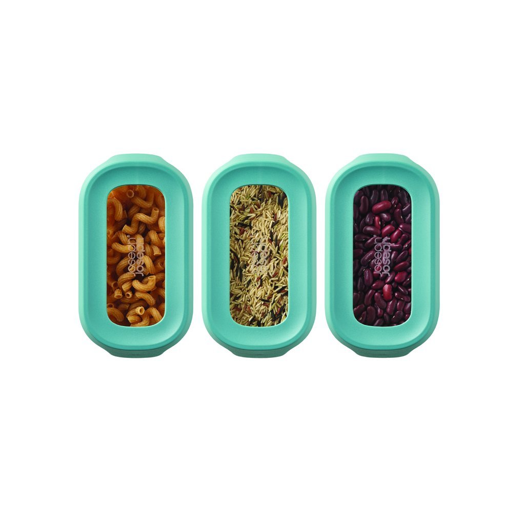 Med de innovativa JOSEPH JOSEPH CupboardStore matburkarna kan du använda det sista lediga utrymmet under hyllorna i ditt köksskåp. I sortimentet CupboardStore finns t.ex. denna uppsättning med 3 stycken 1,3-literskannor som skjuts in i hållare som monteras från hyllans botten. Hållarna är stabiliserade med kraftig 3M-tejp. Behållarna är lufttäta och lämpar sig för förvaring av torrfoder.