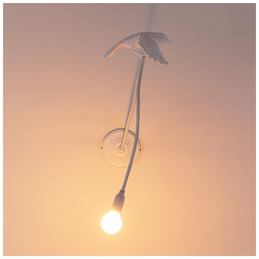 - designvägglampa i form av en liten sparv som håller i en kabel