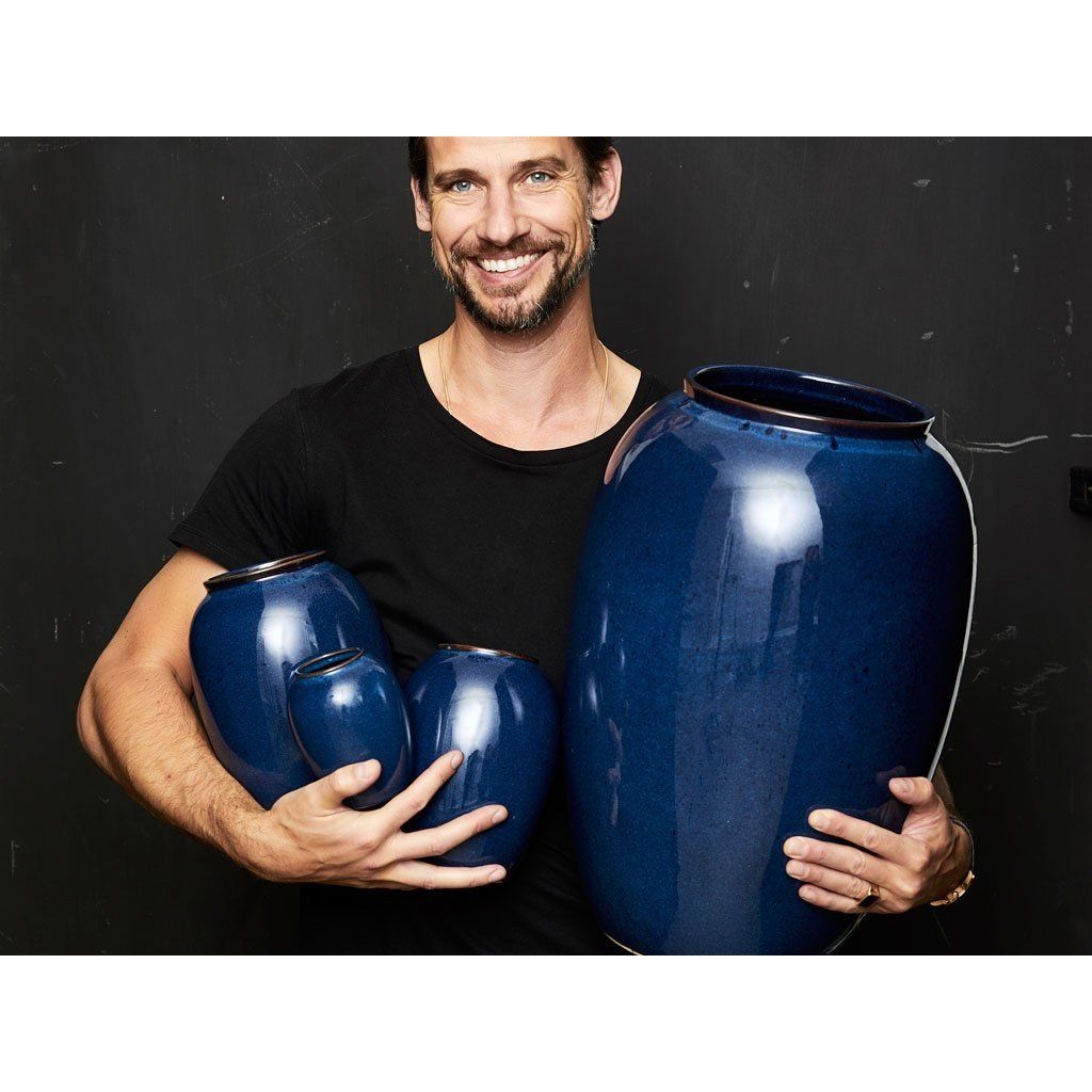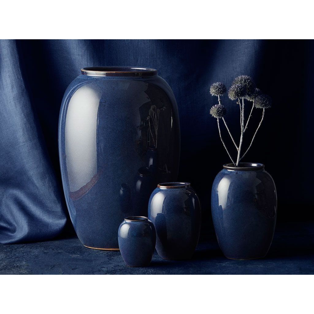 Vas 12,5 cm, blå, stengods, Bitz
