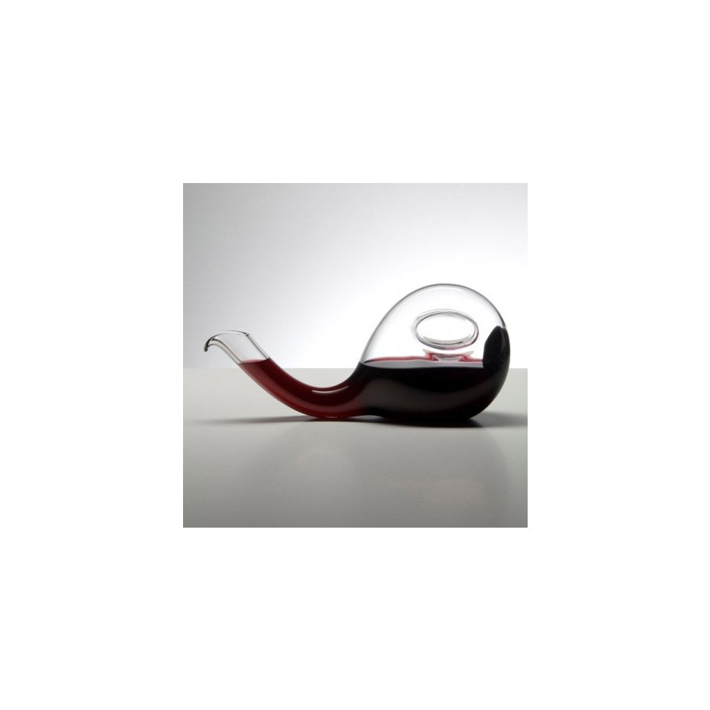 Escargot-karaffens funktion ligger främst i den dubbla luftningen av vinet. Den första uppstår när vinet flyttas från flaskan till karaffen, då innehållet i flaskan utsätts för mer syre. För att flytta karaffen, lyft den från horisontellt till vertikalt läge. Den andra luftningen skapas genom att vinet hälls från karaffen i glas. Ta tag i karaffen genom hålet i botten av karaffen. Karaffens form gör att frisk luft snabbare kommer in i det redan luftade vinet. Denna process skapar ett gurglande ljud.