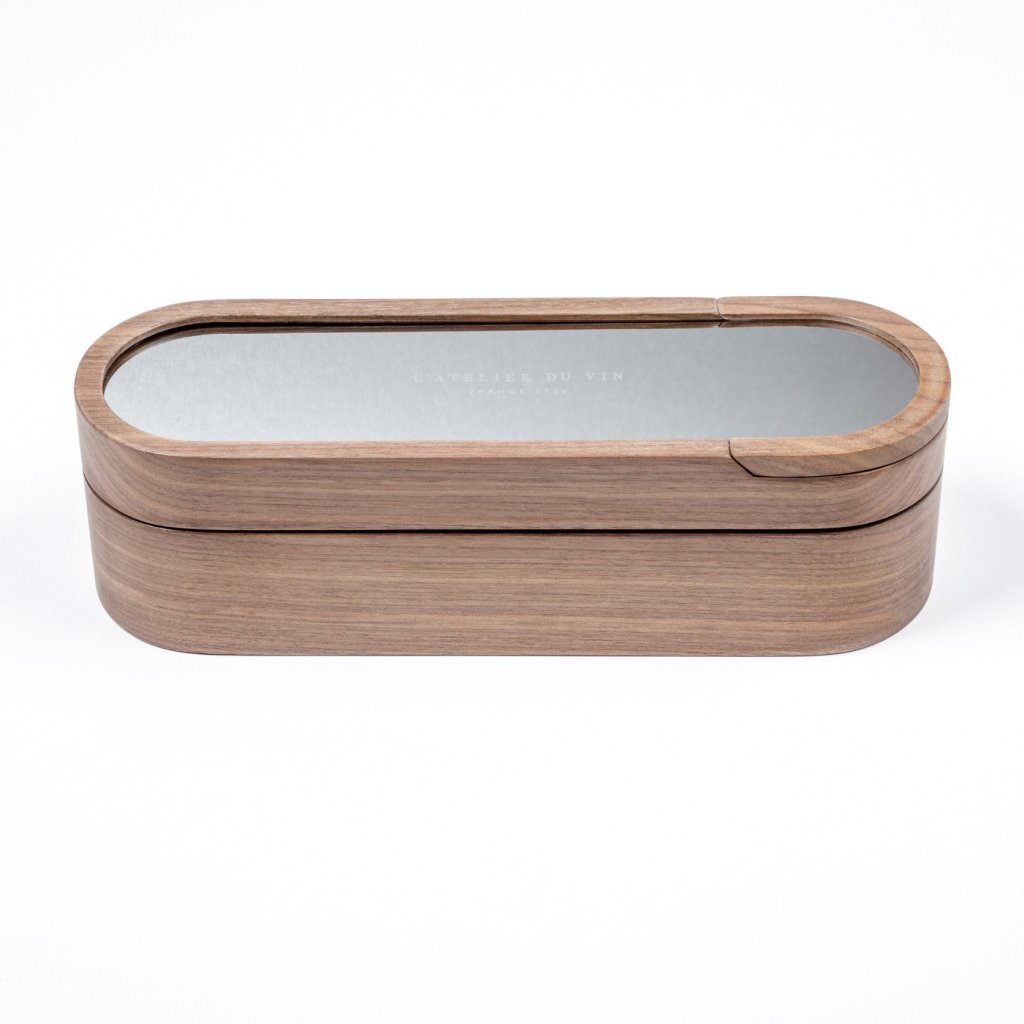 - en uppsättning viktiga verktyg för att öppna och förvara mousserande viner i en lyxbox med ett hemligt fack
