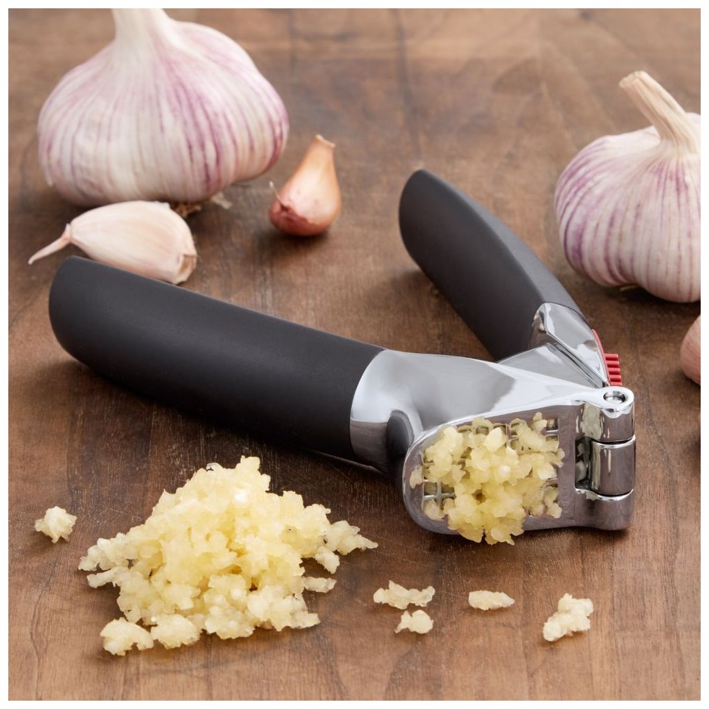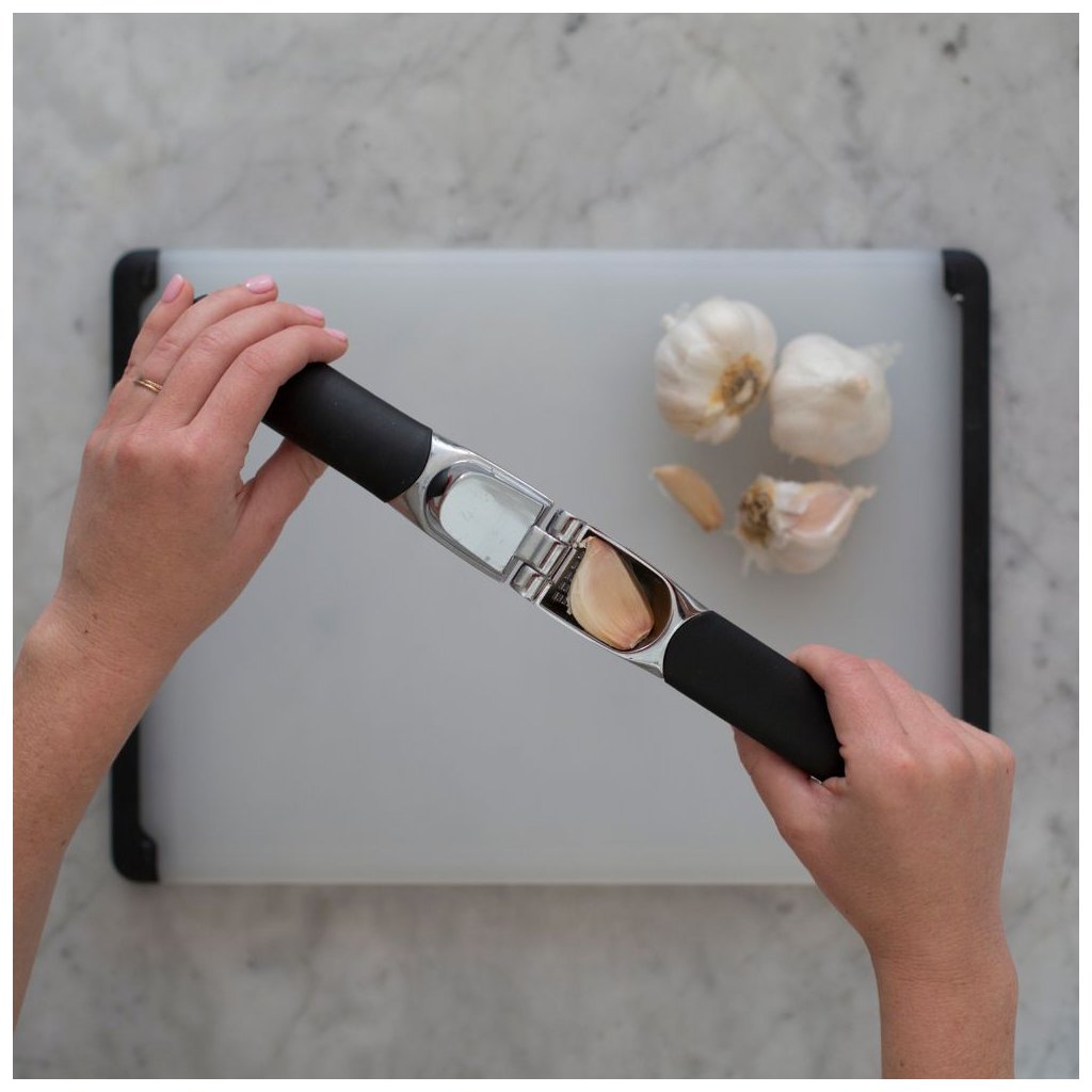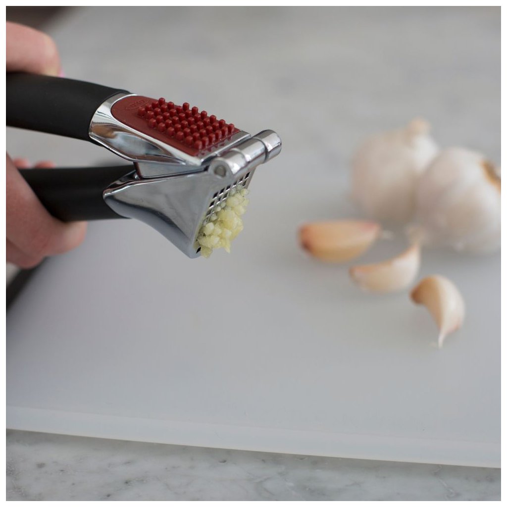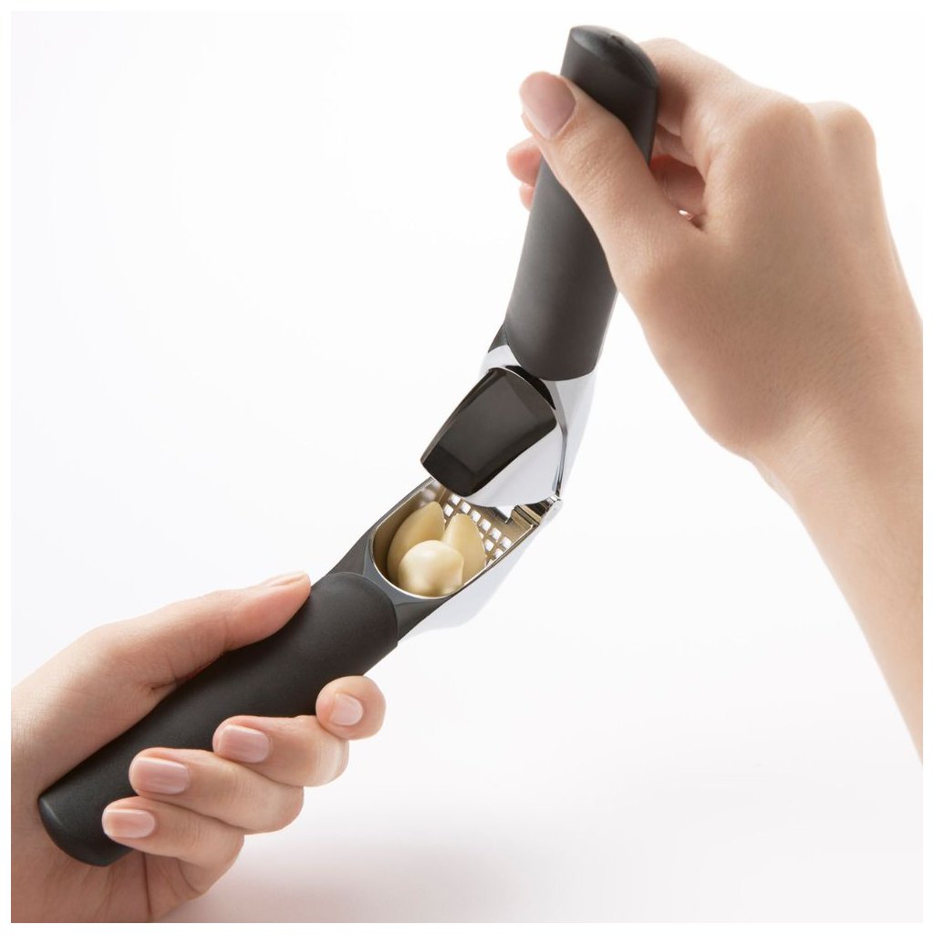 Vitlökspress GOOD GRIPS 18 cm, svart, rostfritt stål, OXO
